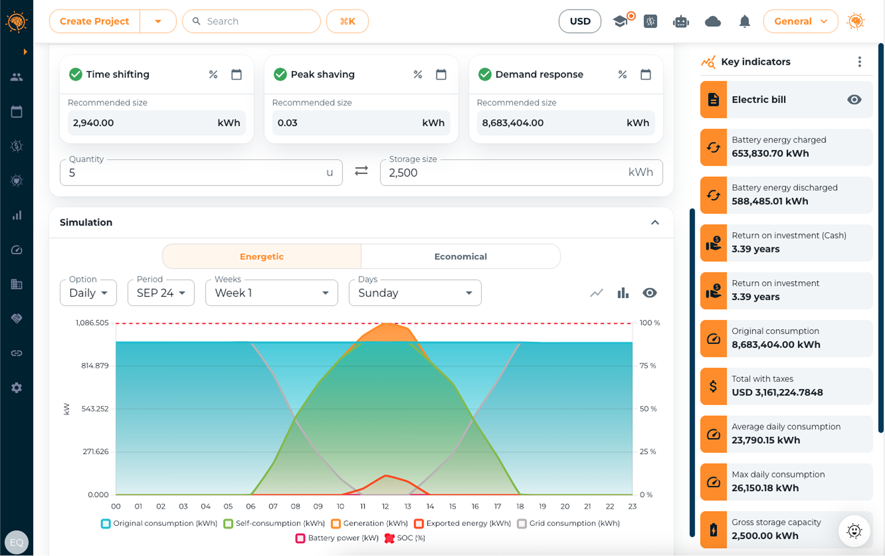 Optimiza el ahorro en la facturación eléctrica simulando y gestionando inteligentemente las horas de carga y descarga de tus baterías.