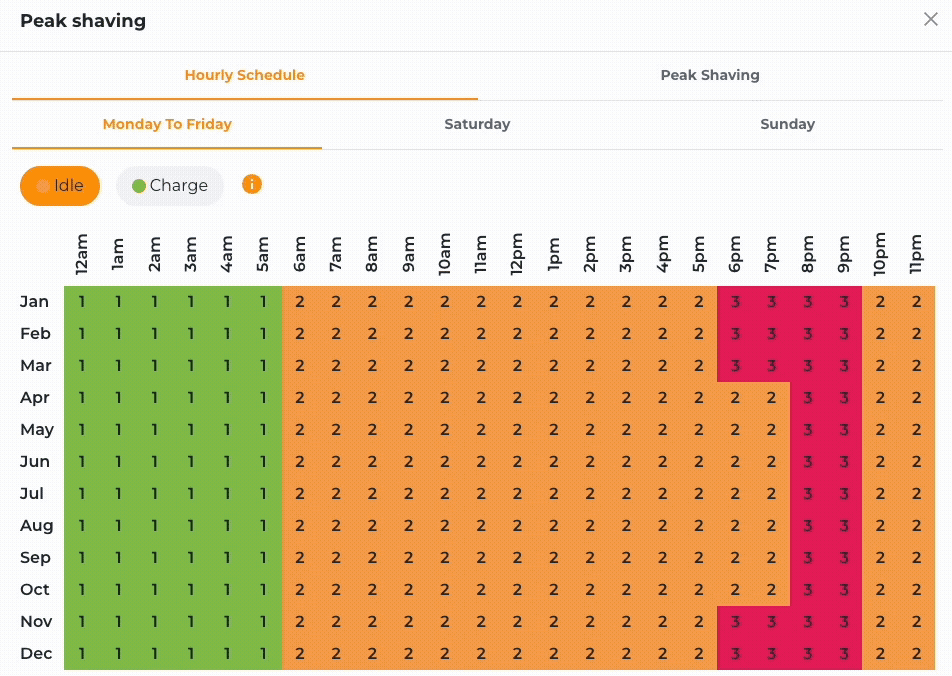 Simula Peak Shaving y visualiza el detalle energético de cada hora de cada día.